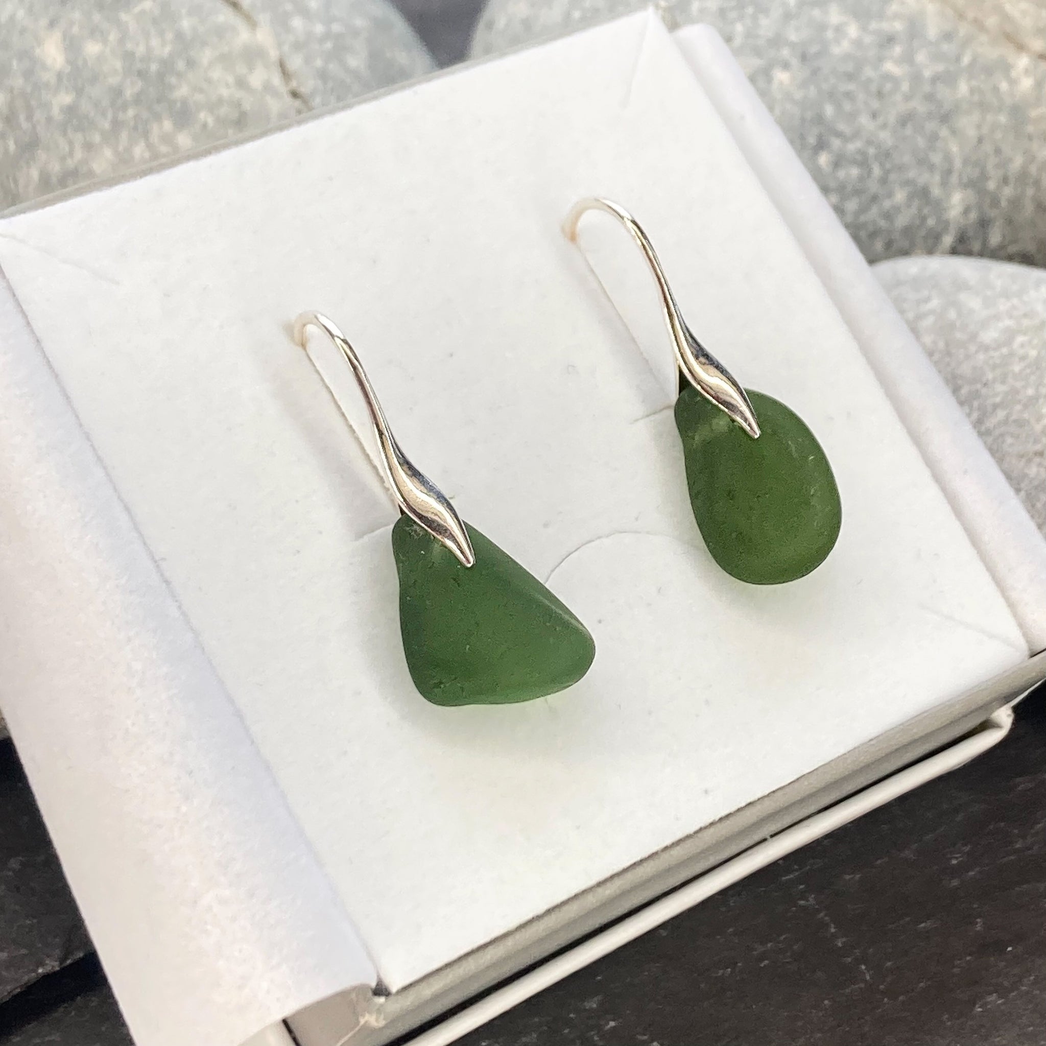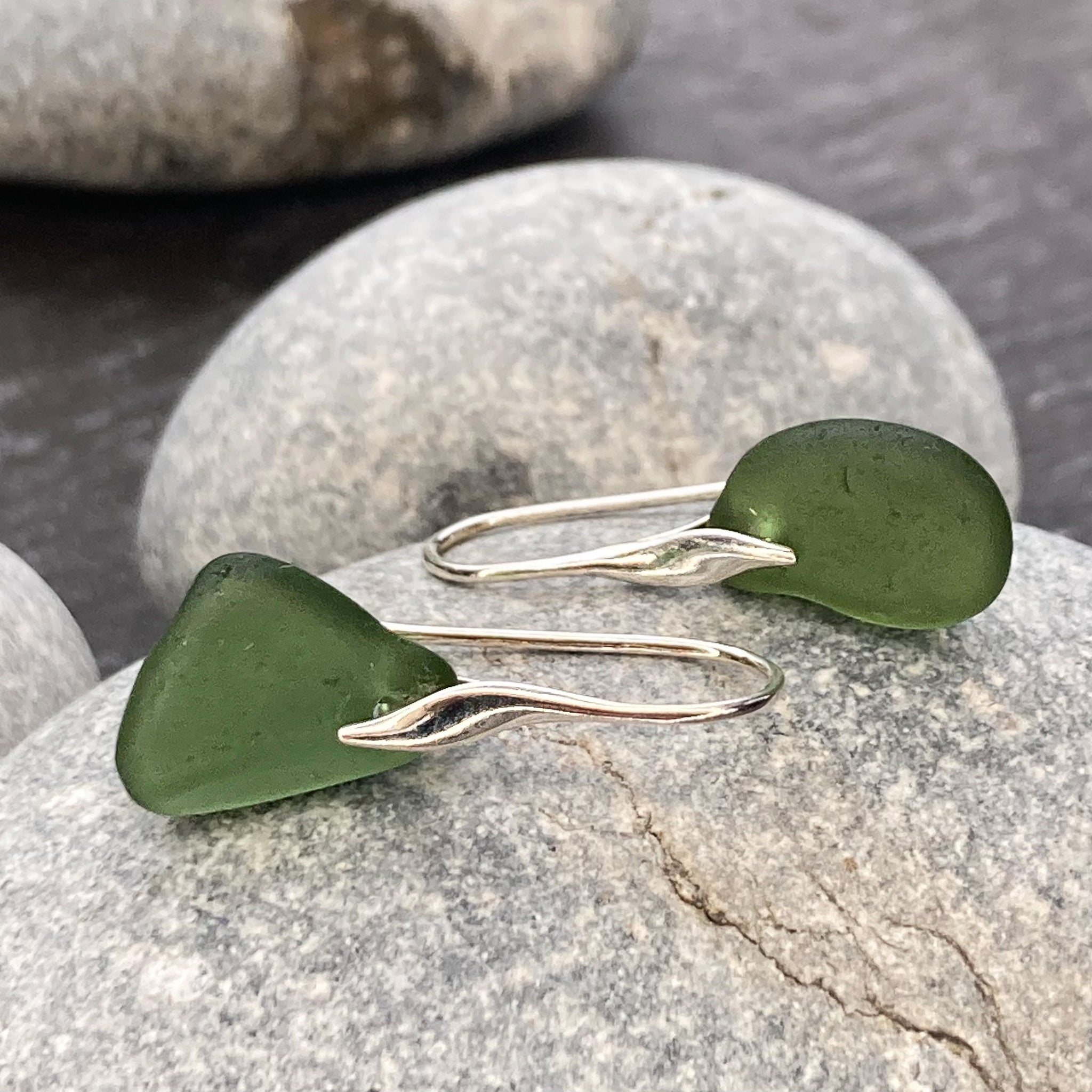 Pretty earrings made using beautiful sea glass (16mm approx. in length) straight from the beaches of Scotland.