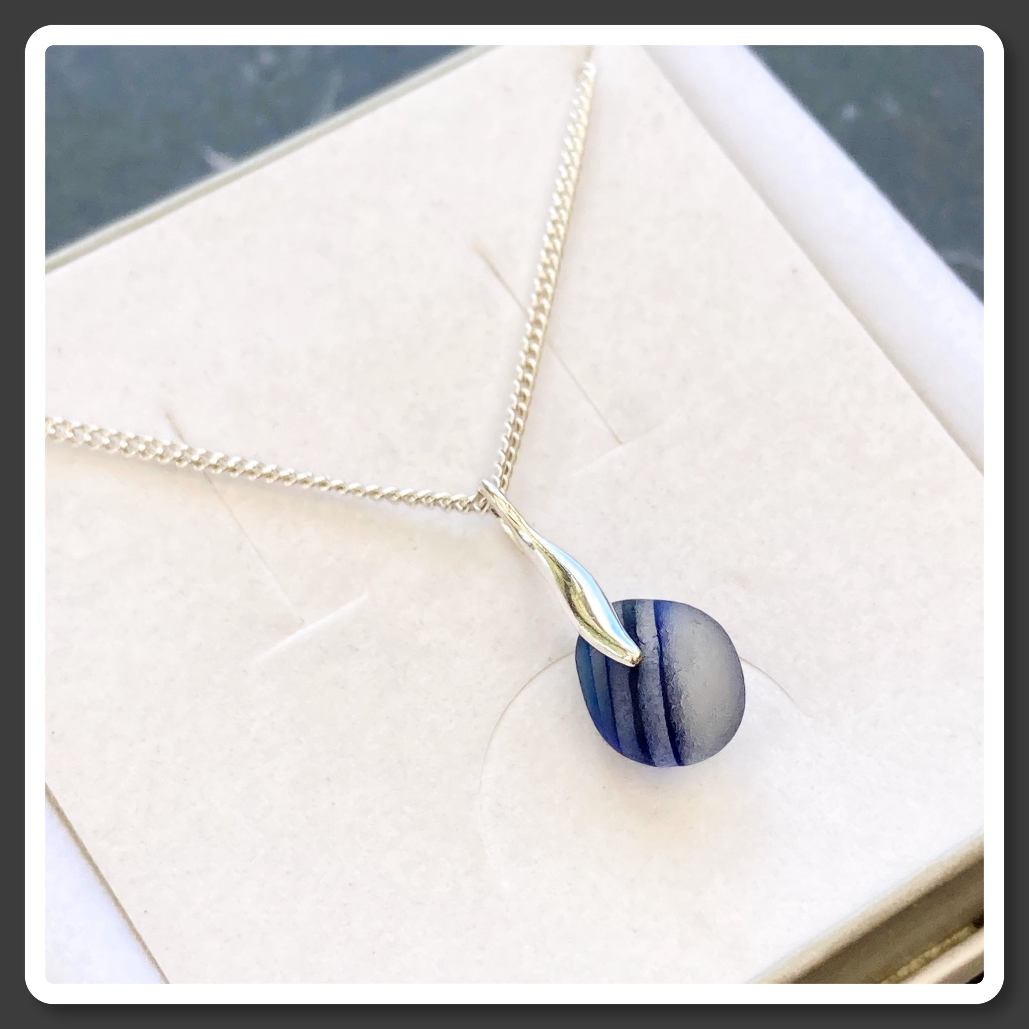 Simplicity is sometimes best - beautiful Seaham blue multi sea glass on classic sterling silver wave bail.