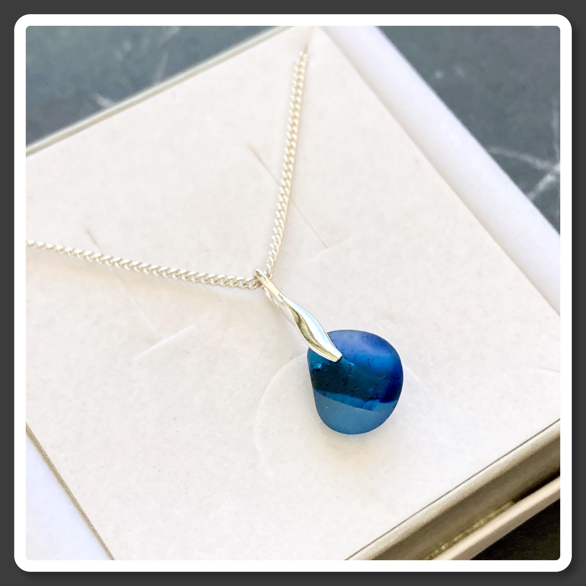 Simplicity is sometimes best - beautiful Seaham blue multi sea glass on classic sterling silver wave bail.